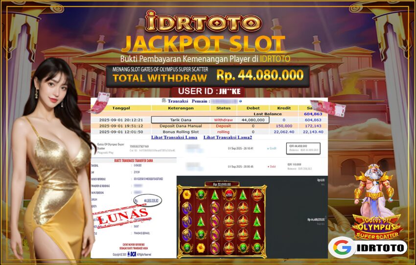 IDRTOTO BAYAR LUNAS JACKPOT PERMAINAN SLOT GATES OF OLYMPUS SUPER SCATTER Rp.44.080.,000 – LUNAS
