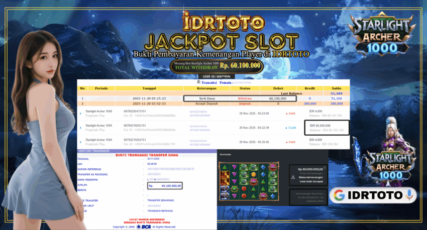 IDRTOTO JACKPOT PERMAINAN SLOT STARLIGHT ARCHER 1000 Rp.60.100.000 – LUNAS