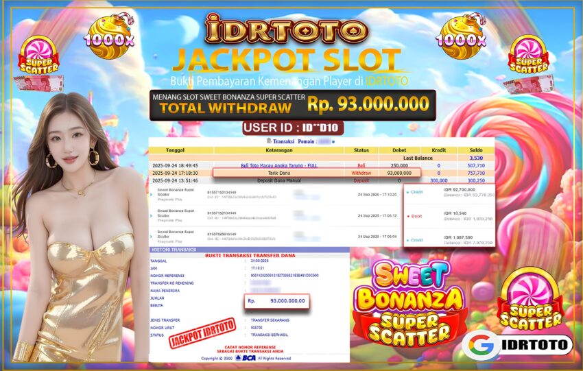 IDRTOTO BAYAR LUNAS JACKPOT PERMAINAN SLOT SWEET BONANZA SUPER SCATTER Rp.93.000.000 – LUNAS