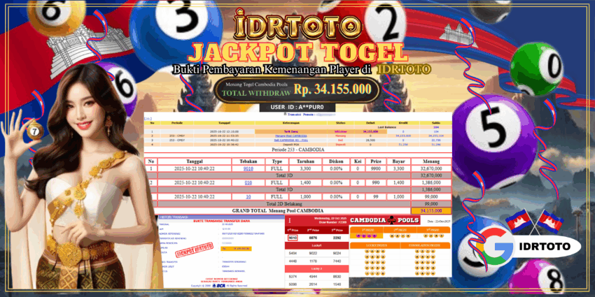 IDRTOTO BAYAR LUNAS JACKPOT PERMAINAN TOGEL CAMBODIA POOLS Rp.34.155.000 – LUNAS