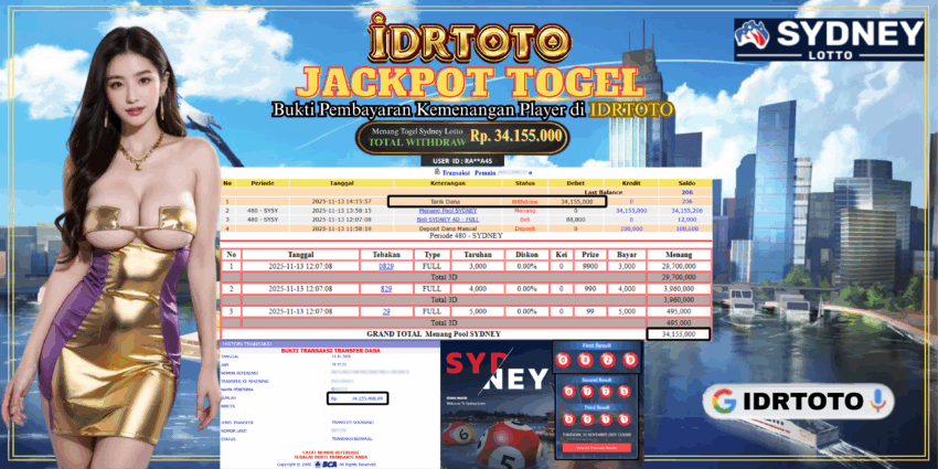IDRTOTO BAYAR LUNAS JACKPOT PERMAINAN TOGEL SYDNEY LOTTO Rp.34.155.000 – LUNAS