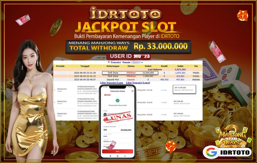 IDRTOTO JACKPOT SLOT MAHJONG WAYS Rp.33.000.000- LUNAS