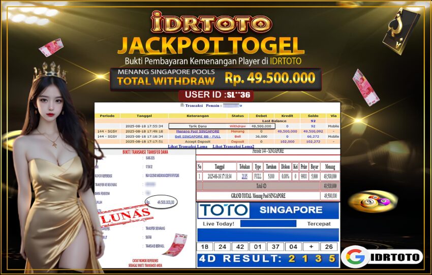IDRTOTO BAYAR LUNAS TOGEL SINGAPORE POOLS Rp.49.500.,000 – LUNAS